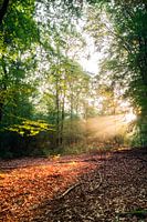 In de vroege zomermorgen heb ik deze foto gemaakt op de Veluwe, in een bos nabij Gortel. Door de mist die, hoewel bijna opgelost, in het bos hing, werden de zonnestralen versterkt. het gaf een mooi schouwspel.