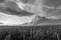 De eindeloze lucht van Oost-Friesland boven een korenveld.
