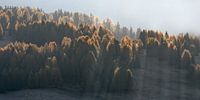 Genomen tijdens een vroege zonsopgang in de Dolomieten in de herfst. De bomen begonnen al geel te kleuren. Het was een koude nacht ervoor, en het grasland was ook deels bevroren.