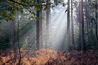 Zonnestralen in een herfstbos