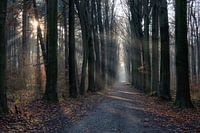 Koop de foto Zonnestralen in het bos op een herfstochtend. van Bart Ceuppens als print op canvas, aluminium dibond, (ingelijste) fotoprint, behang en ArtFrame. Voor jou op maat geprint in Fine-Art kwaliteit.