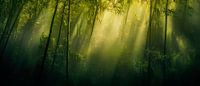 De betoverende magie van het bos ontvouwt zich in zachte groentinten, terwijl zachte lichtstralen door de hoge bomen breken. Deze levendige voorstelling van natuur en rust creëert een ontspannen sfeer, perfect voor de slaapkamer, waar het harmonieuze dromen en vredige nachten kan bevorderen. Een vleugje avontuur en sereniteit in één!