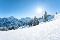 Zonnig uitzicht in de winter in de Allgäu en zijn berglandschap
