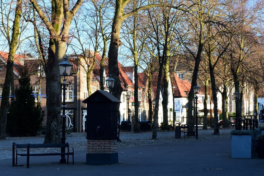 Deze foto heb ik van de Vischmakt in Harderwijk gemaakt, een van de mooiere pleinen van Harderwijk. Het was tweede kerstdag toen ik deze foto maakte, zoals je kan zien was het mooi zonnig weer. Ik stond met mijn rug richting de Schapenhoek. Ik heb er voor gekozen om niet richting de Vispoort te fotograferen maar de andere kant op, het geeft toch een ander beeld op deze plein. Door de laag staande winterzon was een deel van het plein in de schaduw. Ik heb om deze foto te maken een polarisatiefilter gebruikt zodat de lucht net wat blauwer word. Naast de kale loofbomen zie je nog een kerstboom staan en helemaal links op de foto zie je nog wat kerstversiering aan de gevels.
