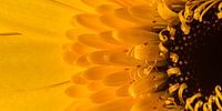 "Zonnige gele panorama" is een macrofoto van een stukje van een gele bloem (Gerbera). Door de gele kleur en blaadjes voelt het werk zonnig aan.