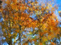 De herfst gereflecteerd in het heldere water. De beukebomen verkleuren en laten hun blad vallen.