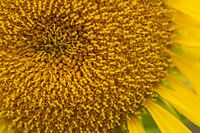 Een macro-opname van de kern van een zonnebloem. Ofwel het oog van een zonnebloem.