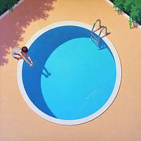 Dit werk legt een rustig zomers moment vast, waarbij eenvoud wordt gecombineerd met subtiele complexiteit. Het ronde zwembad, dat centraal staat in de compositie, symboliseert eenheid en rust, terwijl het helderblauwe water de levendigheid van het leven weerspiegelt. Het samenspel van licht en schaduw is opzettelijk, waarbij de zon…