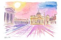 Zonovergoten Sint-Pietersbasiliek met een levendige zonsondergang in het Vaticaan