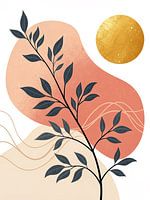 Koop de illustratie Zonovergoten botanische abstractie: Een moderne boho print van Artistic op canvas, aluminium dibond, (ingelijste) fotoprint, behang en ArtFrame, op maat geprint in Fine-Art kwaliteit.