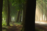 Betreed een vredig bos waar de ochtendzon zachtjes door de torenhoge bomen filtert en een warme gloed over de stille bosgrond werpt. Sunlit Pathway' legt een sereen moment vast wanneer lichtstralen door het bladerdak breken en het kronkelende pad voor je verlichten. Deze rustige scène nodigt je uit om even stil te staan en de schoonheid van de natuur in je op te nemen, waardoor het een perfect stuk is om een rustgevende sfeer in elke ruimte te creëren.