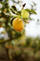 Een rijpe citroen hangt aan de tak, badend in warm daglicht. Dit beeld vangt de eenvoud van het mediterrane leven: natuur, zon en tijdloosheid. Fris, licht en perfect voor een rustig interieur.