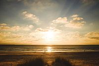 Een mooie zonsondergang op het uiterste westpunt van Ameland, vlakbij Beachclub The Sunset. Met silhouetten van mensen en mooie zonnestrepen.