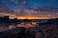 Zonsondergang, Bloubergstrand Beach, Zuid-Afrika, Zelden zo'n bijzondere zonsondergang kunnen fotograferen tijdens mijn vakantie in Zuid-Afrika. De rotsen, het zeewater en de prachtige kleuren in de achtergrond maken het geheel compleet.