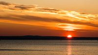 Zonsondergang met wolken en zon aan het Bodenmeer bij Friedrichshafen in Duitsland