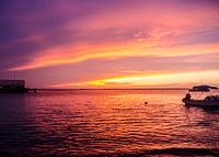 Prachtige kleurrijke zonsondergang in Kralendijk, Bonaire