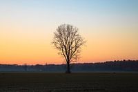 Dit is een prachtig beeld van een oranje zonsondergang in de polder van Drunen. De kleurrijke lucht is gevuld met warme oranje tinten, die de rustige omgeving van de polder omringen. In de voorgrond staat een eenzame boom, die de schoonheid van het landschap en de kleuren van de zonsondergang benadrukt. Het is een magisch moment om te zien!