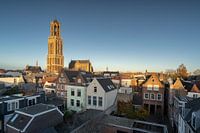 De Domtoren in Utrecht, gefotografeerd tijdens tijdens het gouden uurtje. De toren steekt fier boven de stad uit en laat om het kwartier zijn klokkengeluid horen. Het laatste zonlicht valt over de stad... Nog even en dan is het donker