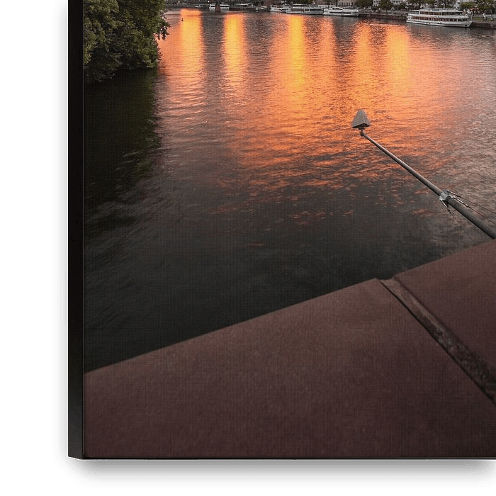 Koop dit moderne kunstwerk Zonsondergang Frankfurt am Main van Fotos by Jan Wehnert op canvas, aluminium dibond, (ingelijste) fotoprint, behang en ArtFrame, op maat geprint in Fine-Art kwaliteit.