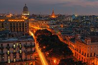 Zonsondergang in Havana - Cuba, met de blik richting het centrum met de El Capitolio als middelpunt in de avond.
