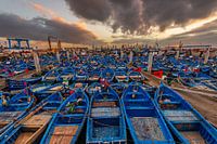 Een uniek beeld in de Haven van Essaouira, waar alle bootjes voorzien zijn van een Marokkaanse vlag ter gelegenheid van het koninklijke bezoek in de oude medina.