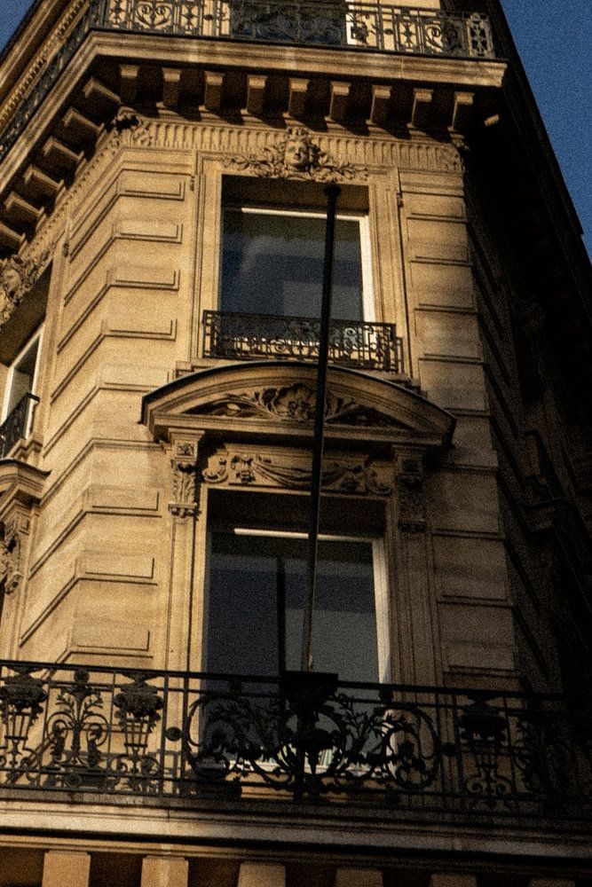Zonsondergang Hoekstructuur in Parijs met een blauwe lucht.