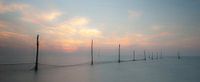 De visnetten staan te wachten op wat komen gaat de zon is al onder en de lucht is nu op zijn mooist.