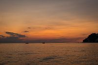 Rechts zie je het schiereiland en in het midden twee vissersbootjes.