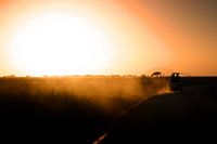 Zonsondergang in Kenia. Dat betekent dat alle safari-auto's met hoge spoed de nationale parken uit vluchten. Na zonsondergang gaan de hekken namelijk dicht.
