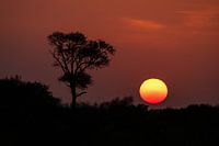 De zon gaat onder in het Kruger National Park, Zuid-Afrika. Een magische sfeer.