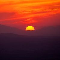 Zonsondergang op Mallorca, Spanje boven de Serra de Tramuntana. Mallorca is een eiland in de Middellandse Zee en onderdeel van de Balearen.