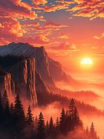 Koop de illustratie Zonsondergang Mist Natuur van Rizal Azhari als print op canvas, aluminium dibond, (ingelijste) fotoprint, behang en ArtFrame. Voor jou op maat geprint in Fine-Art kwaliteit.