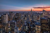 Uitzicht op het Empire State Building en het centrum van New York na zonsondergang