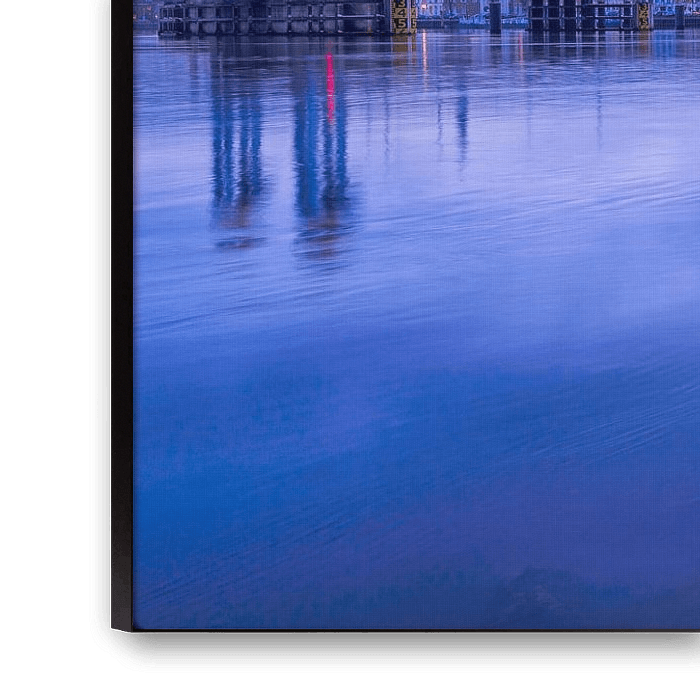 Ik stond hier op een van de kribben in de IJssel bij Kampen. Ik stond te wachten op het begin van het blauwe uur. En 20 minuten na zonsondergang kleurde de lucht nog prachtig rood.