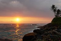 Zonsondergang Sri Lanka, met palmbomen, Indische Oceaan.
