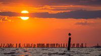 Zonsondergang Waddenzee met een vogel op een paal :)