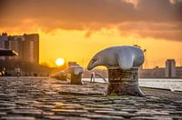 Koop de Rotterdam foto Zonsondergang Wilhelminapier van Frans Blok - foto's, kunst en andere wanddecoratie als print op canvas, aluminium dibond, (ingelijste) fotoprint, behang en ArtFrame. Voor jou op maat geprint in Fine-Art kwaliteit.