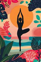 "Zonsondergang Yoga" is een inspirerend kunstwerk dat het silhouet van een yogapositie vastlegt tegen de achtergrond van een tropische zonsondergang. Omgeven door weelderige bladeren en de warme gloed van de ondergaande zon, symboliseert dit tafereel innerlijke rust en balans. Het is een uitnodiging om te ontsnappen aan de hectiek van het dagelijks leven en te genieten van een moment van vrede. Dit stuk zou een serene toevoeging zijn aan elke ruimte, ideaal voor liefhebbers van yoga, meditatie en de schoonheid van de natuur.