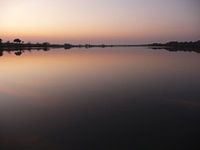 De zon is onder bij Zambezi rivier in Zambia, Afrika