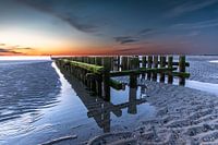 Zonsondergang Zeeland tussen Westkapelle en Domburg bij laag water