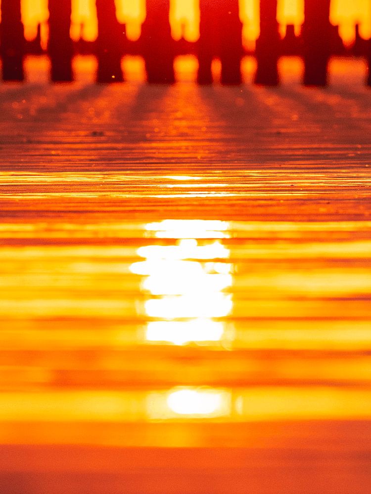 Een mooie zonsondergang op het strand van Zoutelande (verticaal). Mooi zonlicht door de golfbrekers heen.