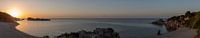 Zonsondergang aan de zwarte Zee in Turkije met rots eilandjes en gouden en blauwe glans van de zonsondergang.