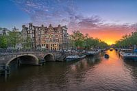 Een mooie zonsondergang aan de Brouwersgracht in Amsterdam.