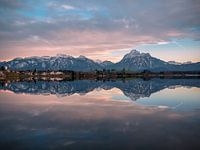 Zonsondergang aan de Hopfensee met zicht op de Tegelberg en de Säuling in Allgäu