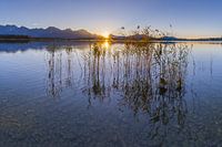 Zonsondergang bij de Hopfensee, Allgäu, Beieren, Duitsland