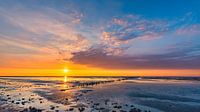 Zonsondergang aan de Noordkaap, het meest noordelijke puntje van het vasteland van Nederland, gelegen in de provincie Groningen, met uitzicht over de Waddenzee.