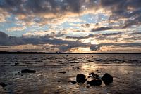 Aan de Oostzeekust bij Laboe zorgt de ondergaande zon voor een dramatische lichtsfeer.