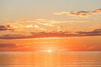 Oranje gloed tijden een zomerse zonsondergang aan de Spaanse costa. Herleef je vakantie herinneringen met deze mooie plaat aan je muur.