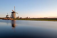 Zonsondergang aan de molen met een spiegeling in het water