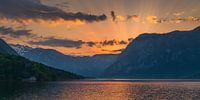 Zonsondergang aan het meer van Bohinj, gelegen in Nationaal Park Triglav en strekt zich uit langs de Italiaanse grens en dichtbij de Oostenrijkse grens in het noordwesten van Slovenië, dat wil zeggen in het zuidoostelijke deel van de Alpen.
